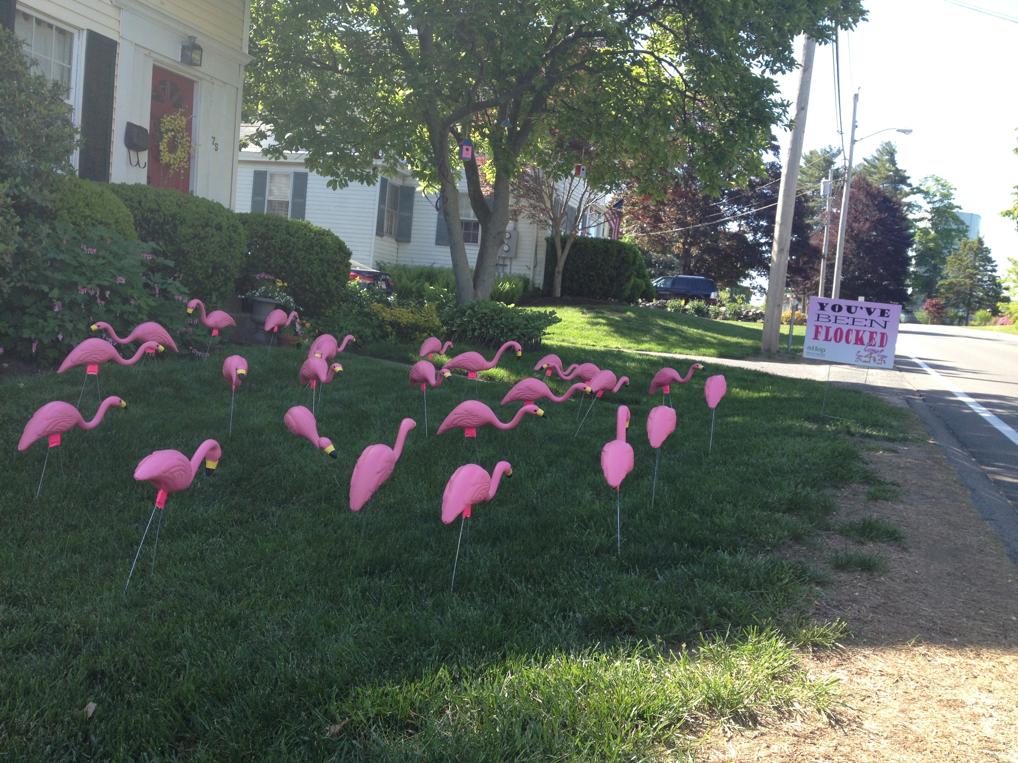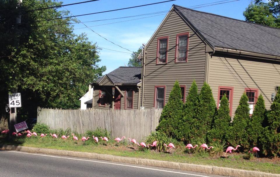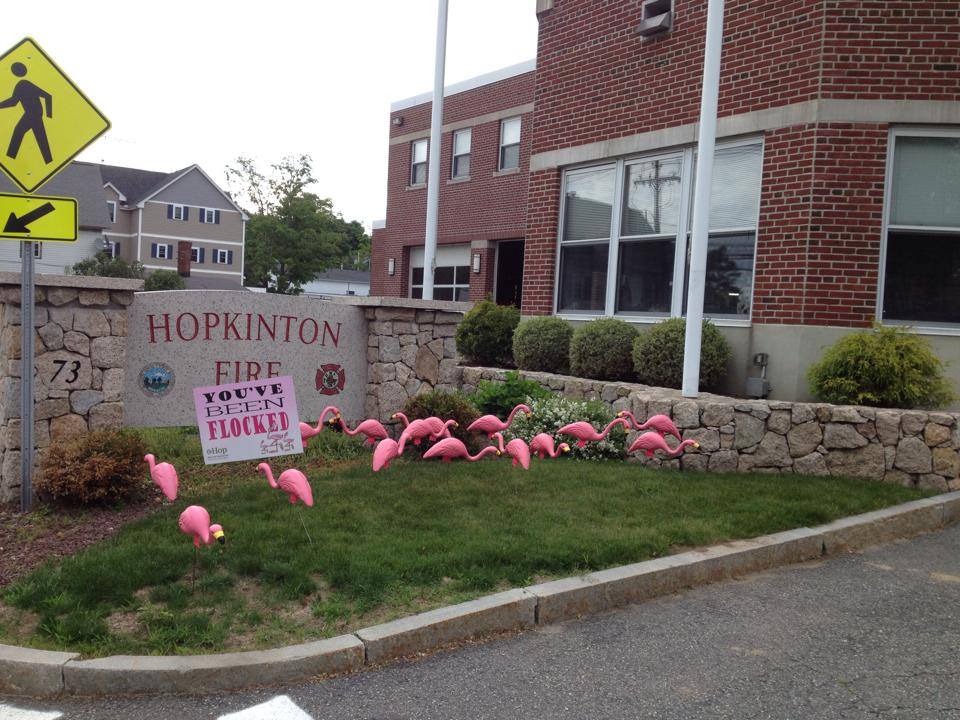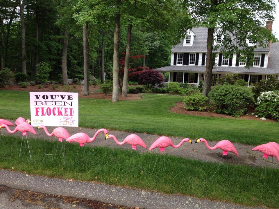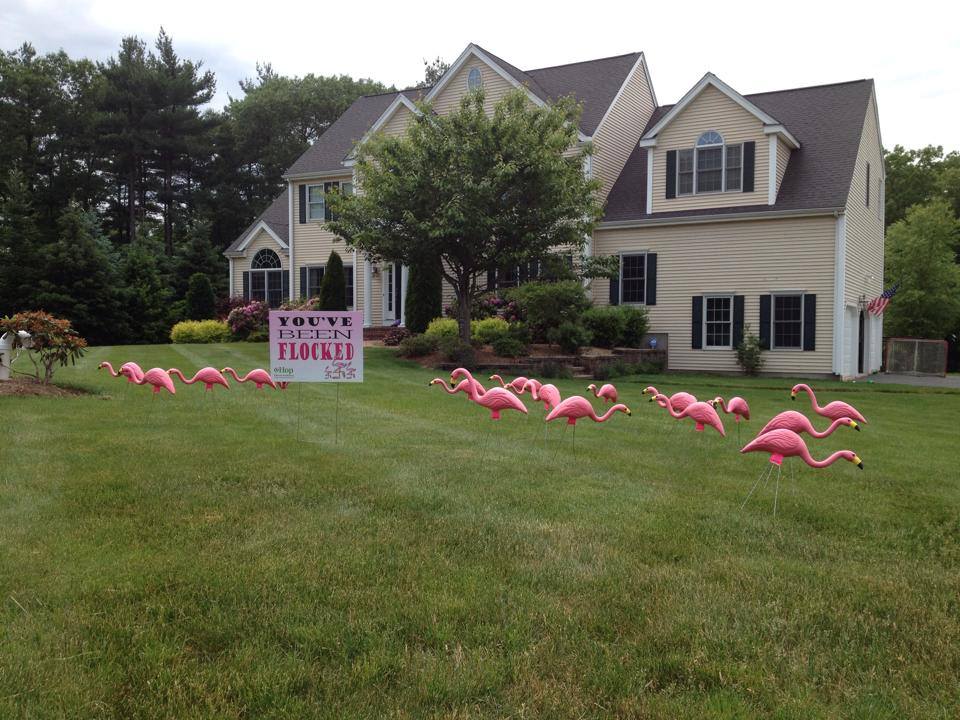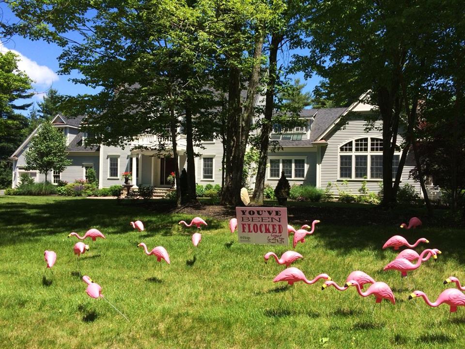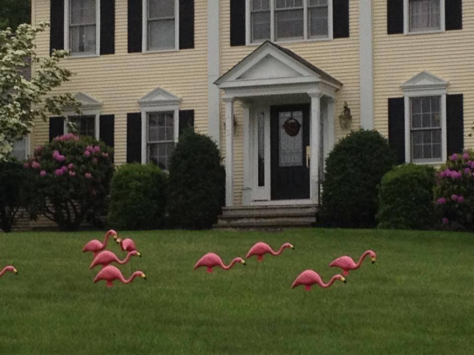 Thank you to everyone who has participated in our second annual Flamingo Flocking Fundraiser. We had a lot of fun and have raised over $700. The flocks are now sold out for this year, but click here if you got flocked and want to find out who flocked you. We plan to use the money for more signage and publicity to promote Town Meeting 2015, another donation to the Tax Relief Fund and another sponsorship of a Veteran’s breakfast at the Senior Center. See our photo gallery below.