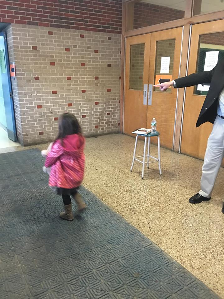 Step #1 – PARKING available on the side or back of middle school, ENTER through the side of the building, LEFT into the MS cafeteria.